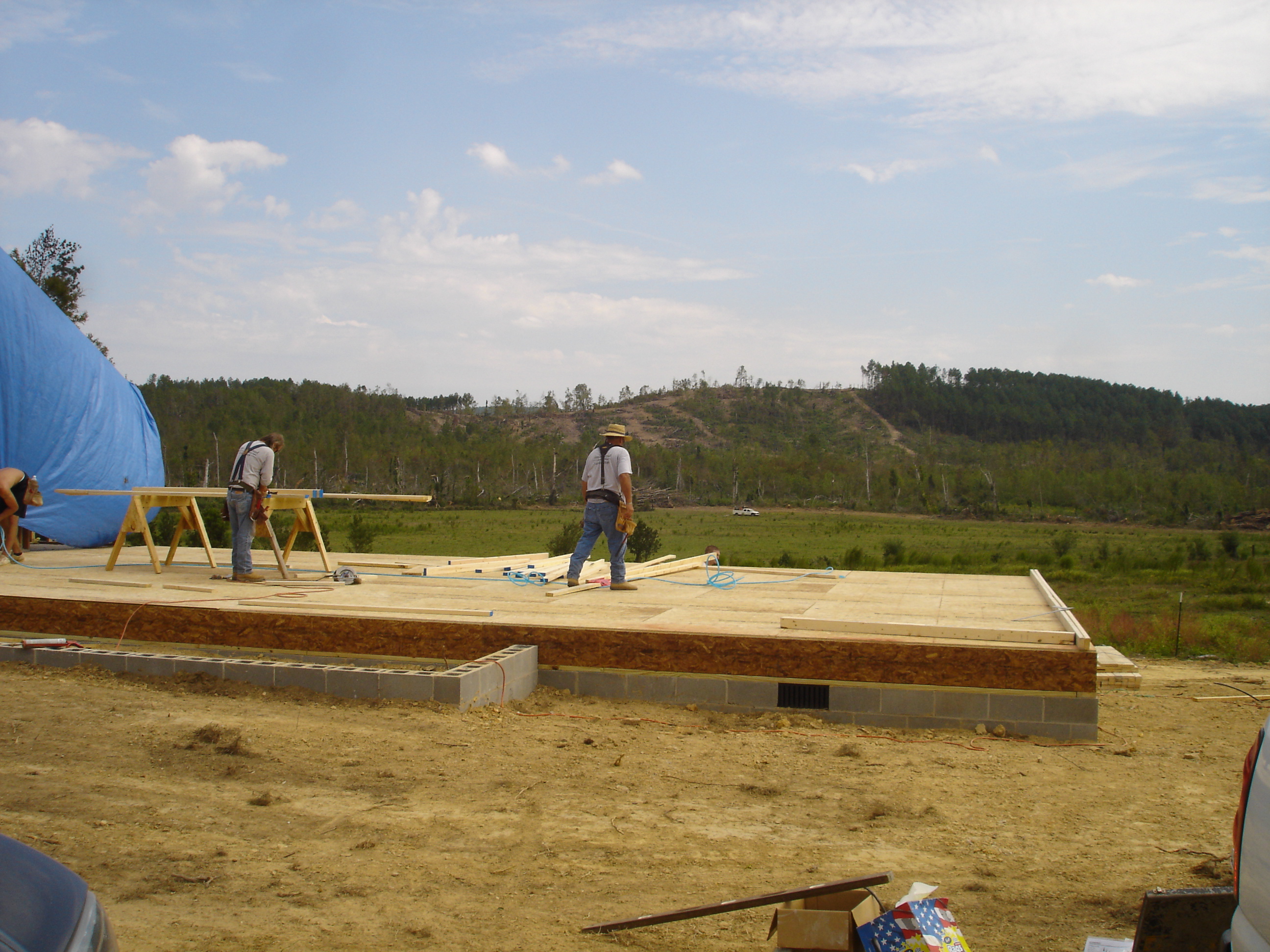 After visiting several sites where homes had been built or were underway, we came to the site that we have committed to help together. The husband and wife came out to meet us. They have been married 38 years, have eight children and there were thirteen of the extended family together that day when the tornado roared over their little patch of land and destroyed their trailer homes. I will let you listen to Mr. Hardy’s remarkable description of what happened. It’s about 2 ½ minutes.