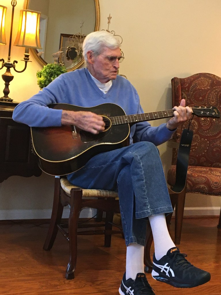 For me, it is much more personal. Uncle Vance passed the guitar down to his son, Vance, Jr., who gave it to my father before Vance jr. died. Dad loved and played that guitar until dementia took even music from his mind. The last year or so, Dad sat, contented, in his recliner at the skilled nursing facility where he and my mother have lived the past few years, roommates until finally his body gave way to the great mystery of death. Dad knew me until a few days before he died, still calling my name and laughing when he saw me, now bedfast.